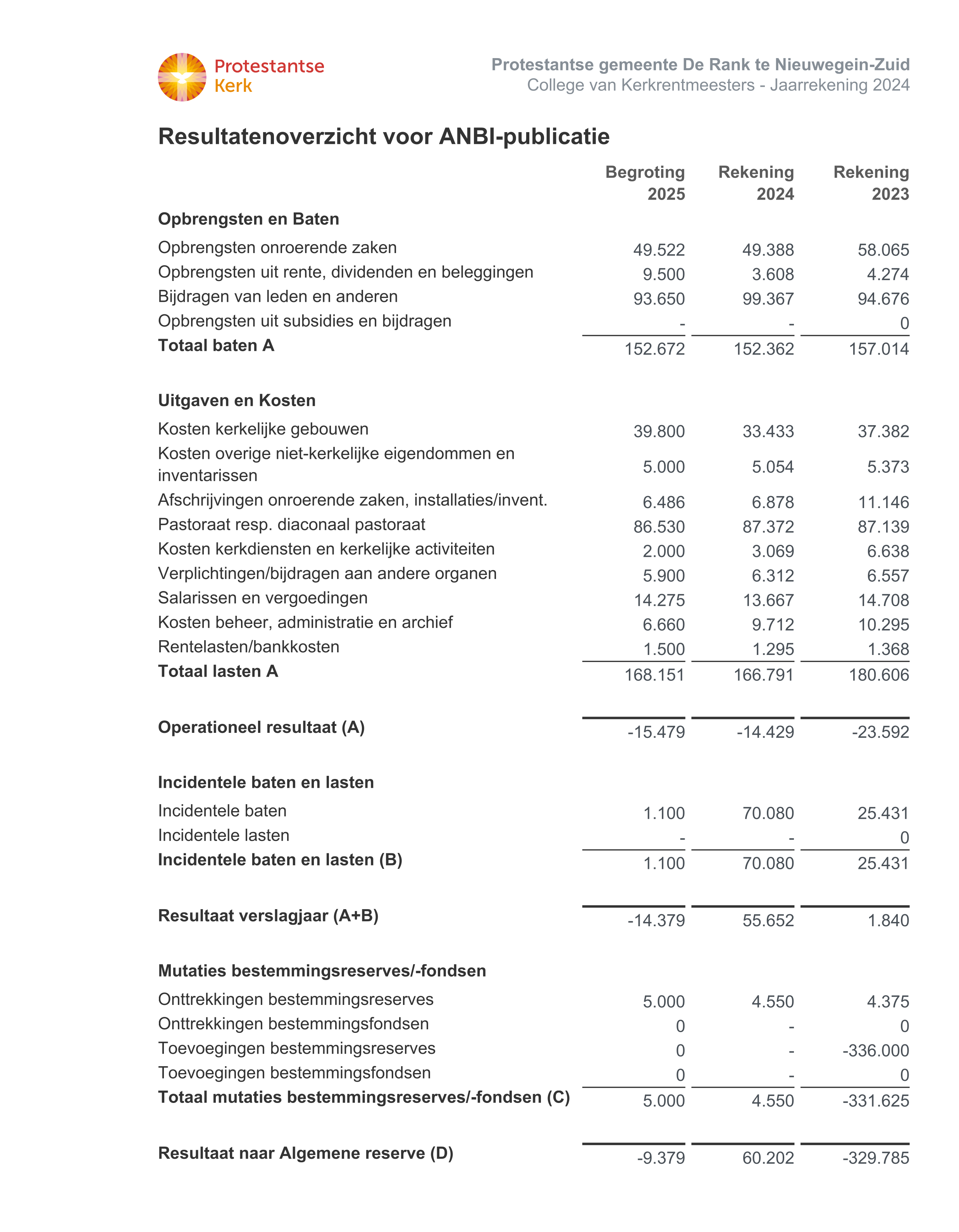 - Kosten pastoraat praktisch gelijk aan 2023.